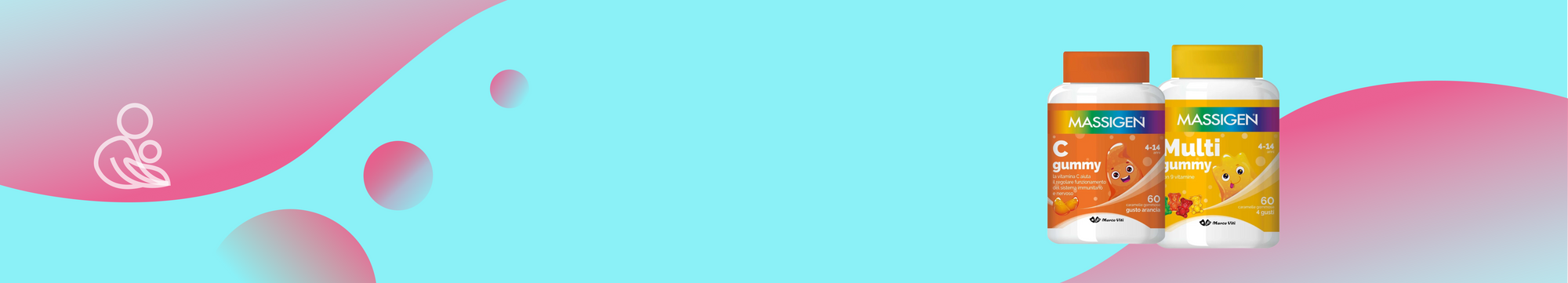 Massigen - Multi Gummy, Multivitaminico per Bambini 4-14 Anni, Vitamine Gommose con Vitamina A, C, E, D, B6, B12 e Acido Folico, 60 Caramelle, Quattro Gusti, Senza Glutine e Lattosio