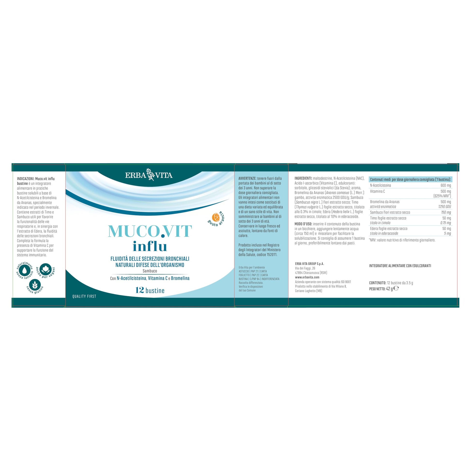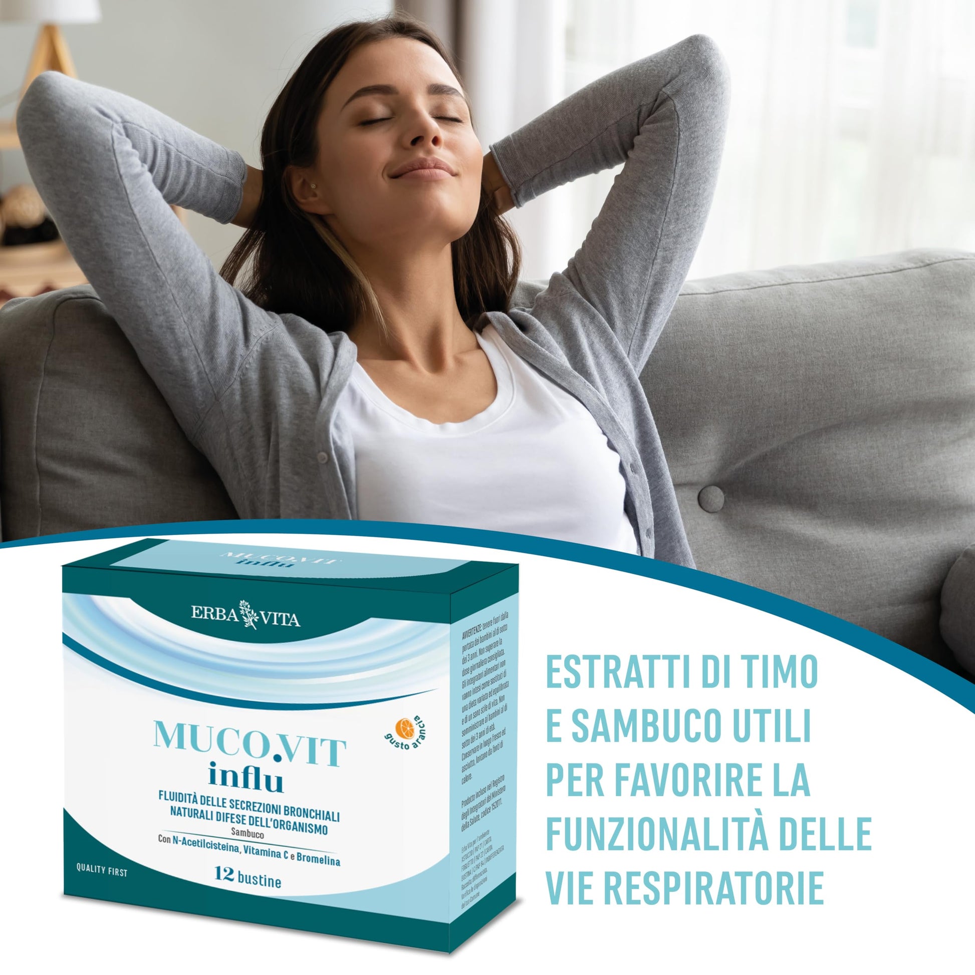ERBA VITA Muco.vit Influ integratore alimentare in pratiche bustine solubili a base di N-Acetilcisteina e Bromelina da Ananas, specialmente indicato nel periodo invernale - 12 bustine