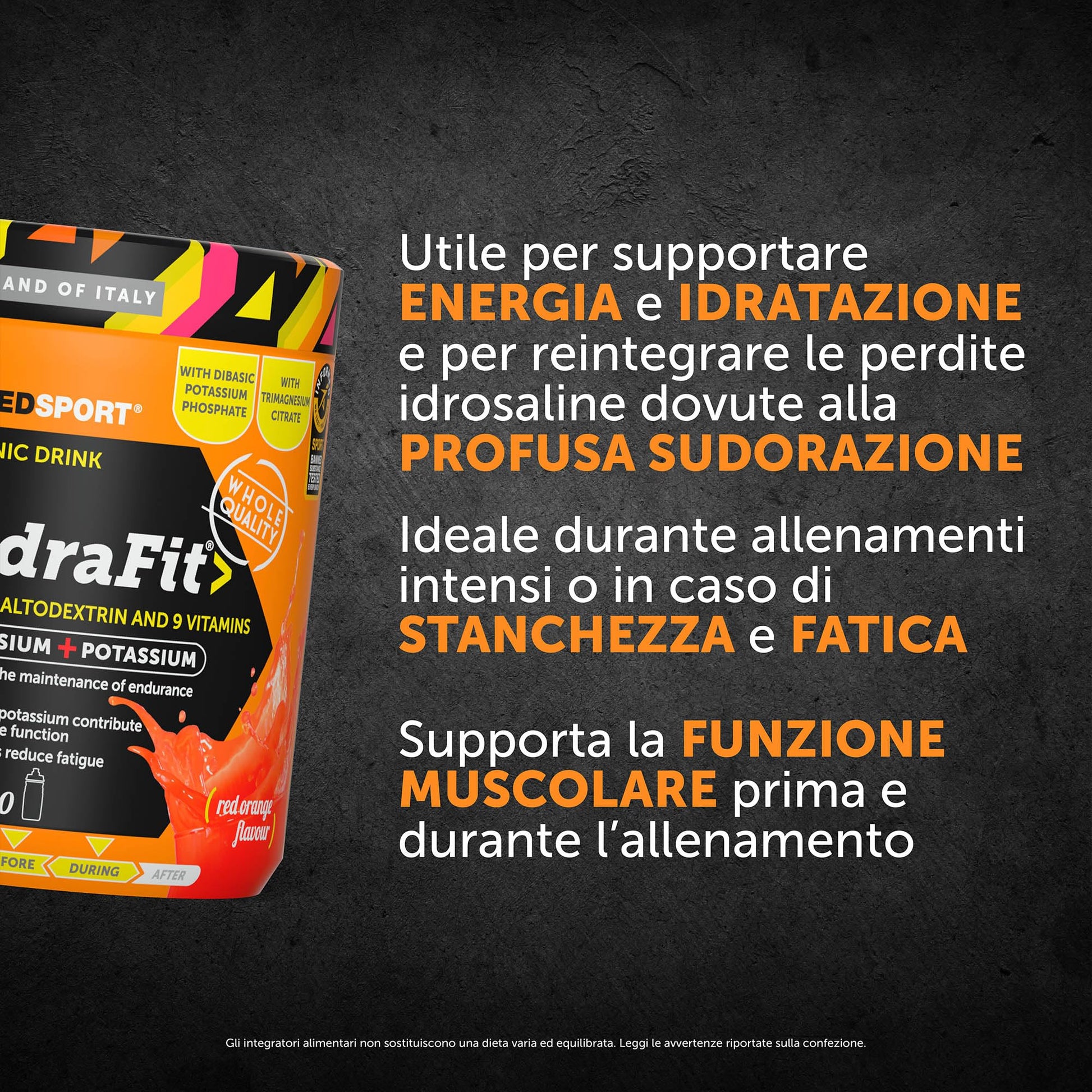 NAMEDSPORT Hydrafit> + Sportbottle, Mix di Magnesio, Potassio e Vitamine, Ideale per la Preparazione di Bevande Isotoniche, Utile per Reintegrare Liquidi nello Sport, Brand of Italy