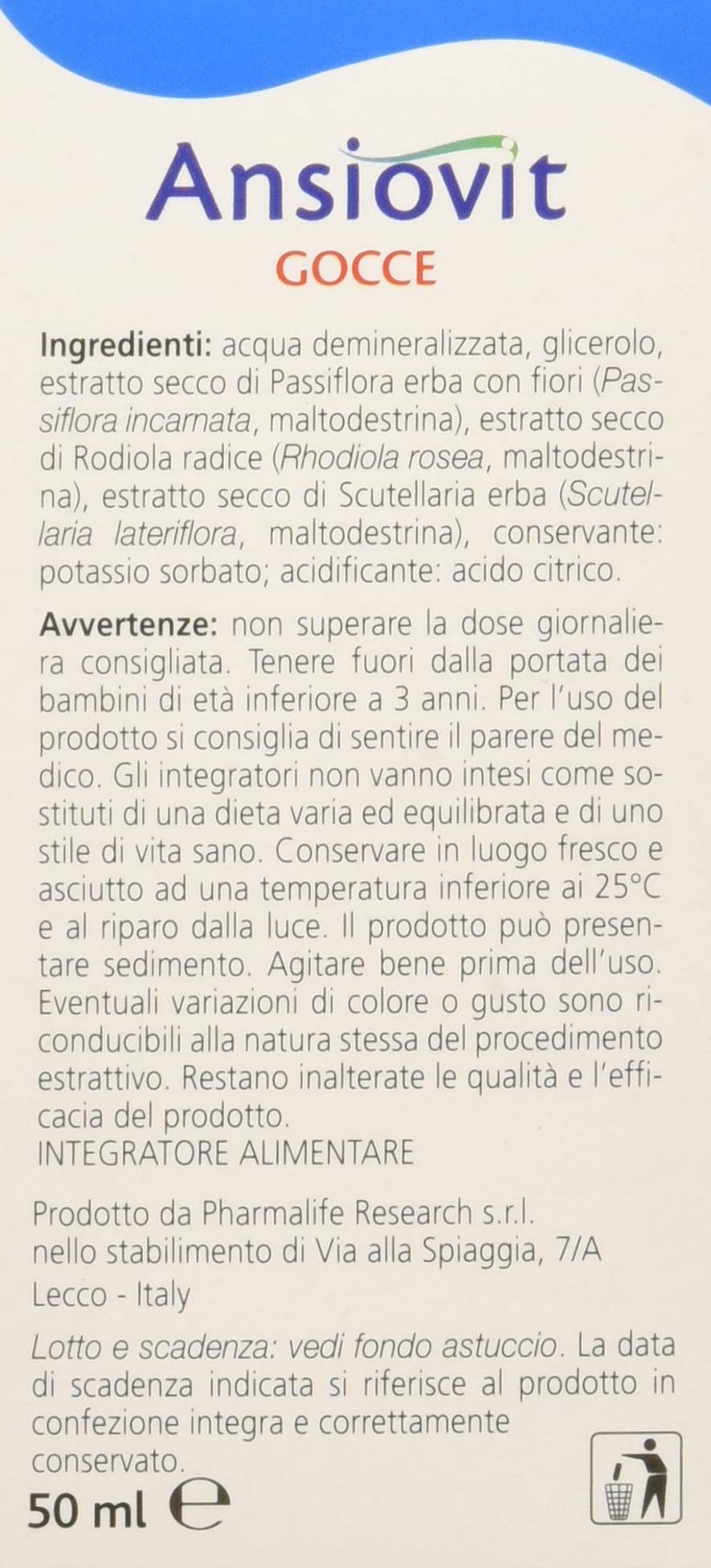 Pharmalife Research Ansiovit Gocce 50 ml. Ansiovit Gocce è un integratore a base di Passiflora, Rodiola e Scutellaria, ingredienti utili a svolgere una fisiologica attività rilassante e distensiva.